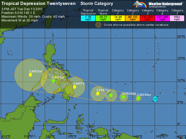 TD ligt momenteel op 796 km ten zuiden van Andersen Air Force Base, Guam. Het systeem wordt naar het westen geduwd door de zuidelijke begrenzing van een lage tot middel subtropische rug. Er bestaat een kans, dat dit systeem uitgroeit tot een cycloon van de eerste categorie.