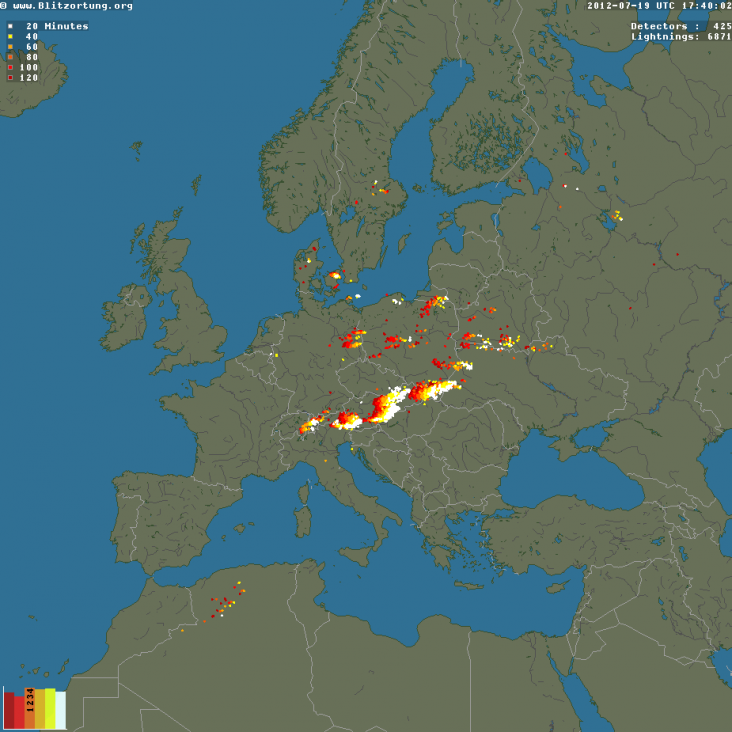 2012-08-22: Around 20:00 MESZ a large thunderstorm hits Völs in Tyrol, Austria. Coincidentally I filmed as a downburst fell the larch in front of the house. After a few minutes the Sun shine again.