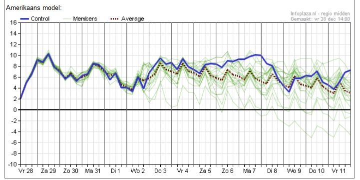 Zodra de atmosfeer ons weer mogelijkheden geeft dan wordt het wel weer druk. kijk maar naar de pluim hierboven waar je ziet dat zo een beetje alle leden van EC en GFS tot minimaal de 2de op dezelfde lijn zitten.. booooooooooooooring ( we wachten het wel even af na de zevende EC begint daar weer leuk te worden, GFS komt met een Eurohoog en dat laatste zorgt wel dat het eindelijk eens droog wordt maar gaat ons geen diepvrieskoude geven, hoogstens wat stralingskoude..) | Gewijzigd: 28 december 2012, 15:55 uur, door Callie-P