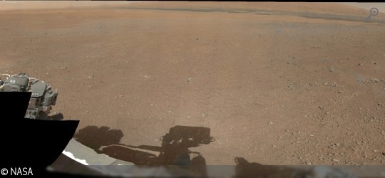 De Marsjeep Curiosity is vorige week geland op de rode planeet en stuurt beelden door. Nu kan u ook 360 graden rondkijken, alsof u er zelf staat. Zo is duidelijk te zien dat de robot in een grote krater is geland. En ook de jeep zelf kan u in detail bekijken.