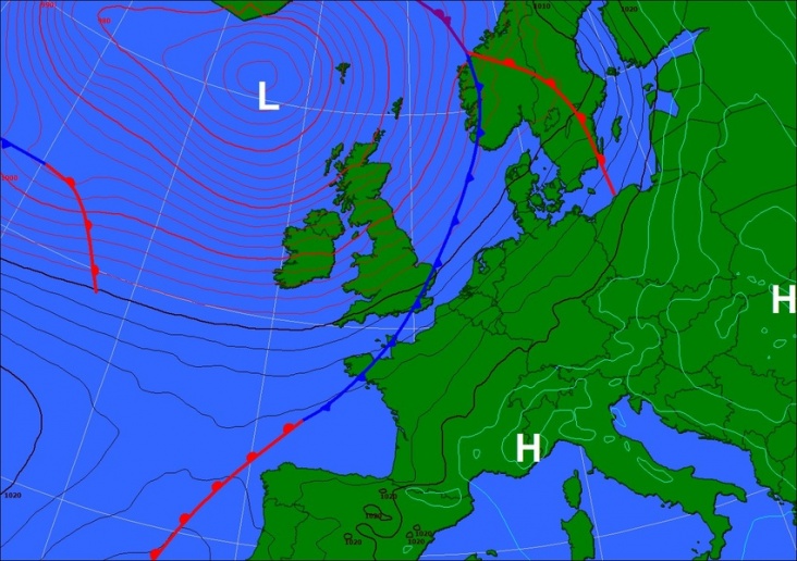 Voor het zover is, moeten we eerst even door een zure appel heen bijten. Er ligt namelijk een lagedrukgebied boven de Atlantische Oceaan ten noordwesten van de Britse eilanden. Hieraan gekoppelde storingen en secundaire lagedrukgebieden veroorzaken momenteel een wisselvallig weerbeeld. Dat houdt nog tot en met vrijdag aan.