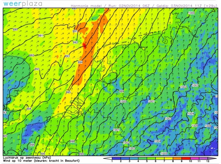 Morgen is er vanaf de tweede helft van de ochtend aan de kust kans op zware windstoten van ongeveer 75 km/uur. ( net een kleine windkracht 9 )