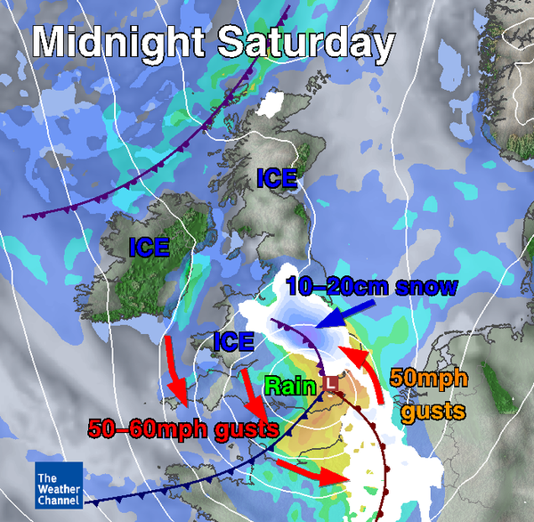 Volgens Weeronline.nl krijgt de zuidelijke helft van het land in de loop van komende nacht en zaterdagochtend te maken met (natte) sneeuw. De neerslag komt vanuit het westen en begint in Zeeland. Langs de kust zal de neerslag vooral als regen of natte sneeuw vallen, maar verder naar het binnenland als sneeuw naar beneden komen. „Vooral de provincies Noord-Brabant, Limburg, Gelderland en Utrecht krijgen te maken met een witte wereld”. Weeronline.nl heeft het over „mogelijk plaatselijk 10 centimeter of meer”.