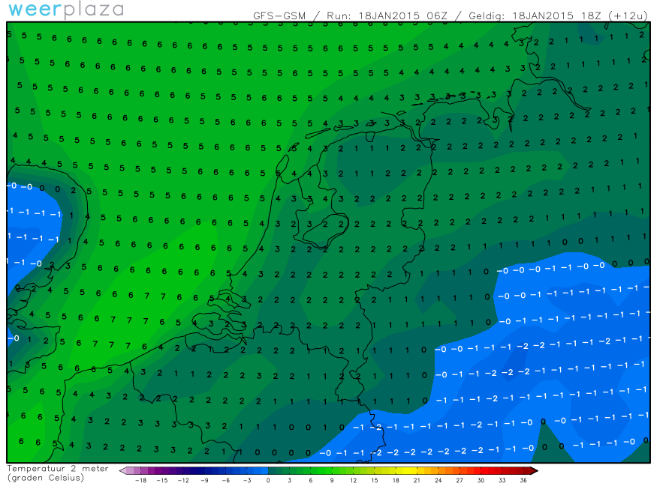 Volgens GFS rond de 1 graad, gewoon een nul te veel (foutje). Kijk zelf maar >>> http://www.weerplaza.nl/weerkaarten/ <<<