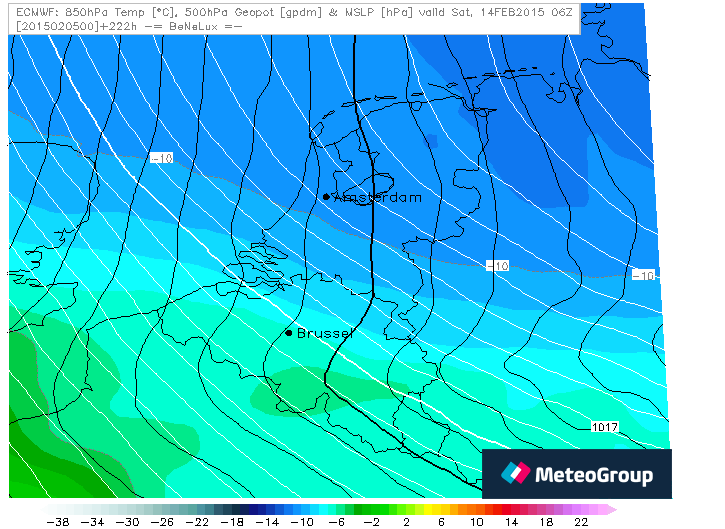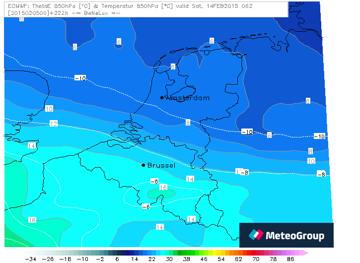 Theta e zelfs 6/12graden.....dus ruim onder de 12graden grens. Theta/e temps min 10. En dauwpunten min 4 waardes komen terug over een groot deel benelux. 2meter temps rond vriespunt.