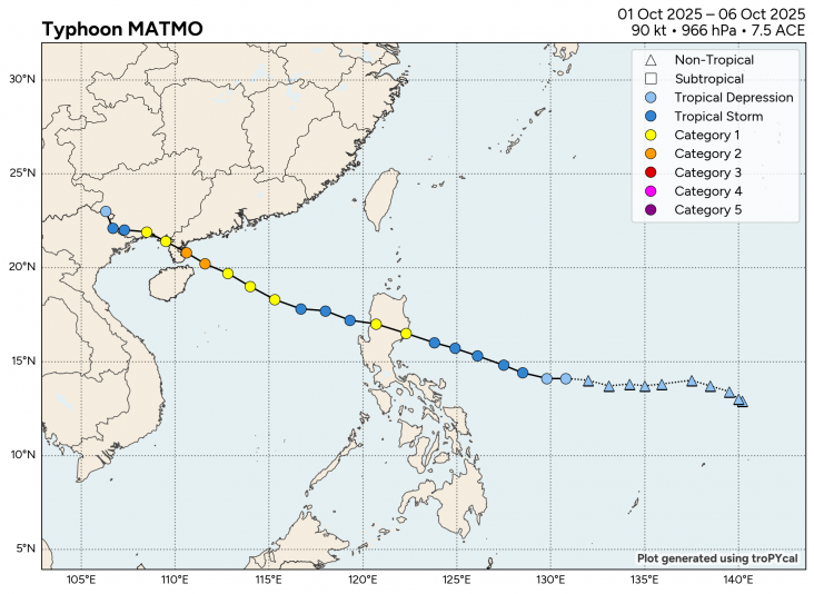 De komende uren trekt Matmo weer naar de zee tussen de Filipijnen en China. Volgens de meeste modellen komt de storm bij het zuiden van China als categorie 1 tyfoon aan land.