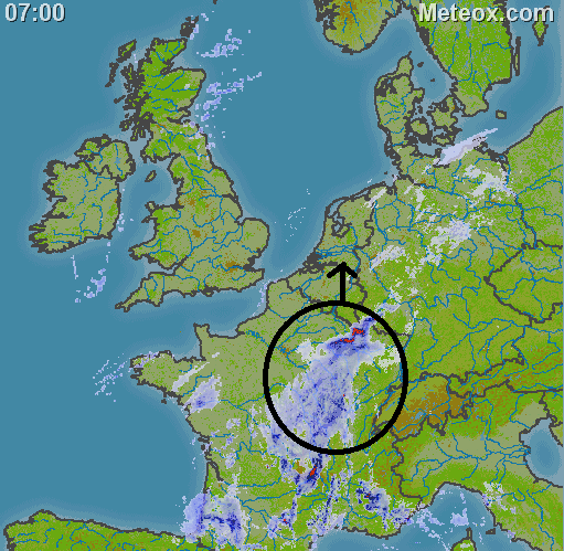 Die buien in frankrijk, komen die recht over ons land?? Ze gaan wel de goede richting, namelijk naar linksboven toe. Dat is recht over Nederland heen!