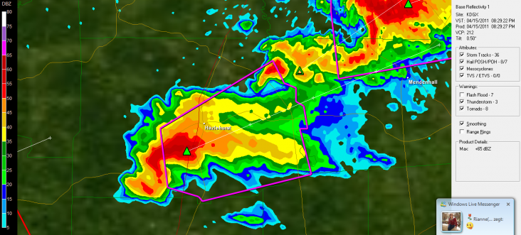 Edit: ben nu uurtje bezig: Bijna elke cell is tornado warned en er zijn al verschillende tornado's bevestigd: