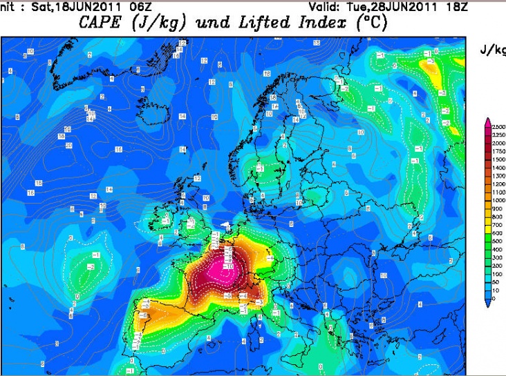 Ben eigenlijk wel nieuwsgierig of er ook ergens een overzicht (geschiedenis) is te vinden van extreme CAPE en LI voor NL/Europa. Dit soort cijfers lijken nogal on-europees?