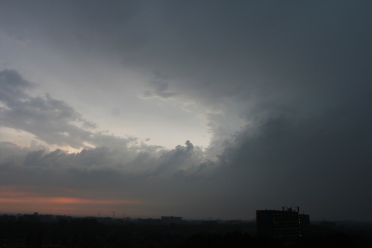 Ben meteen snel naar de flat gefietst en besloot op de 12e verdieping te gaan staan(tog maar niet op de 14e, dit was alsnog te hoog maar hier sta ik meestal met onweer ) In de verte hoorde ik de eerste donders al aankomen en begon het behoorlijk dicht te trekken en steeds donkerder te worden.