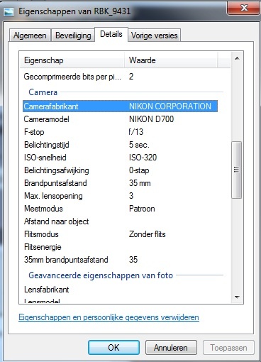 Die foto is uiteraard op een statief gemaakt met de volgende instellingen: