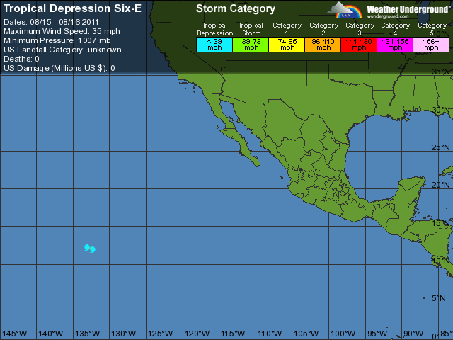 Ondertussen beweegt zich in de Stille oceaan een tropische depressie naar het westen. Dit systeem bevindt zich ver van het land en de heeft windsnelheden van 55 km/h. De depressie kan uitgroeien tot een tropische storm, voordat deze zich boven koeler zeewater gaat begeven.