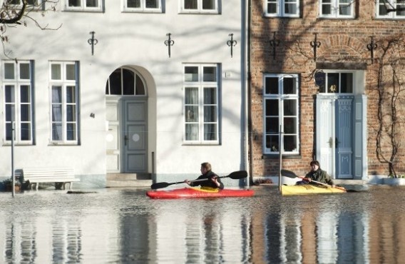 Tientallen vakantiehuisjes op Camping Wedderbergen staan op dit moment in het water.
