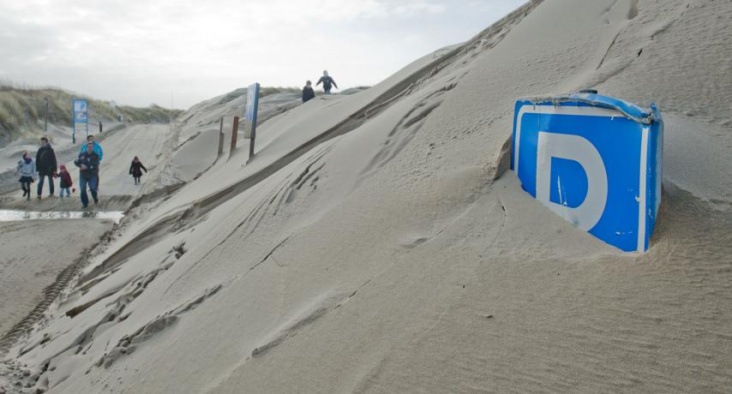Het stormachtige weer van de afgelopen dagen heeft de aanzet van de Brouwersdam flink op z'n kop gezet. Aan de Schouwse kant, ter hoogte van Beachclub Perry's, heeft de wind bijna een nieuwe duin opgeworpen. Om de parallelweg en de opgang naar het strand toegankelijk te houden, heeft wegbeheerder Rijkswaterstaat gisteren alvast wat zand uit de weg laten ruimen. Er ligt nu nog een dunne laag zand, maar daar is veilig overheen te rijden. Ook de berg zand die op de parkeerplaatsen is geblazen wordt volgens een woordvoerder van Rijkswaterstaat nog opgeruimd. Omdat dat minder prioriteit heeft, begint de aannemer volgende week aan die klus.