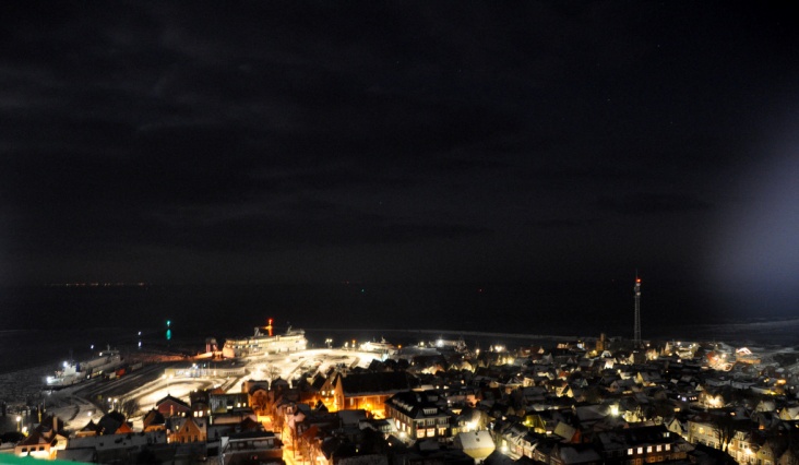 En de veerboot Friesland die met veel moeite de haven van West Terschelling binnen komt .