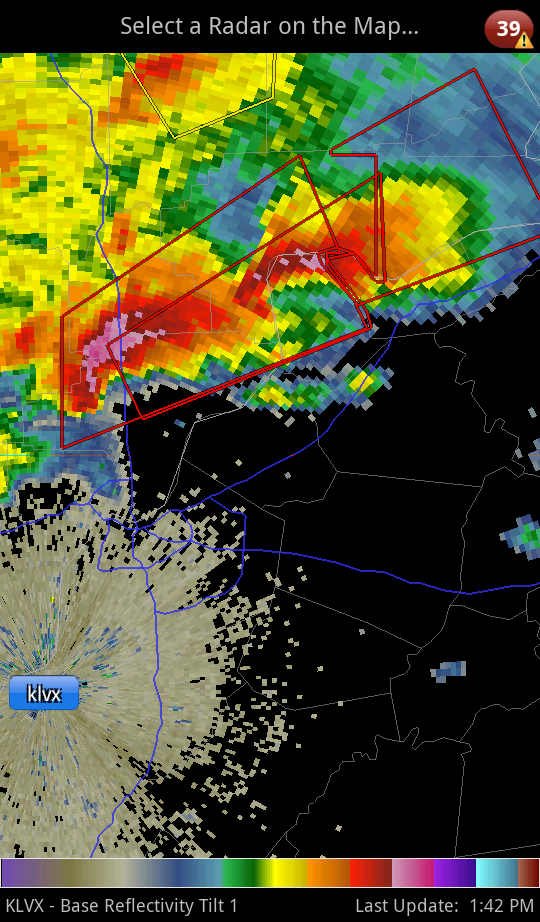 The public reported a #tornado with that cell, moving NE at 55mph. Greenville take shelter! Golf ball sized hail also possible. [via Twitter]