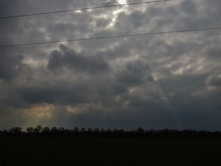 Deze foto is vandaag(06-03-2012) gemaakt. Je ziet duidelijk hoe de zon probeert door te breken, maar niet achter de dikke bewolking uit komt