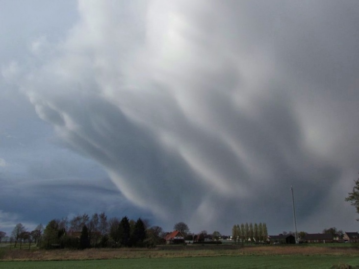 Mammatusachtige structuren na passage van een stevige bui afgelopen woensdag. Foto: wederom Corina Magielse.