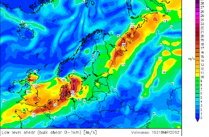 de tempraturen die nu verwacht worden is in een geheel bewolkte conditie, stel voor de zon gaat toch schijnen kan de tempratuur oplopen to mischien wel 2 graden meer dan voorspelt en dat zorgt dan weer voor een hogere cape waarde des te warmer het wordt des te meer vocht het kan opnemen en dus zwaardere buien kunnen ontstaan dan tot zover is verteld , in zulke situaties is het beste wat je kan doen is nowcasten. ik persoonlijk verwacht dat het wel tot lokale noodweer kan komen maar en dat we wat krijgen is vrijwel zeker de grote vraag is gewoon wat doet het weer op dat moment want 2 graden of meer verschil met het model en je hebt dus weer een heel andere situatie | Gewijzigd: 9 mei 2012, 10:41 uur, door NitroGenetics