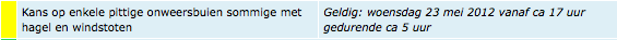 Noormaal zetten ze neer : kans op onweer / lokaal kans op onweer, / Regen met afentoe onweer Maar nooit : Pittige onweersbuien ,
