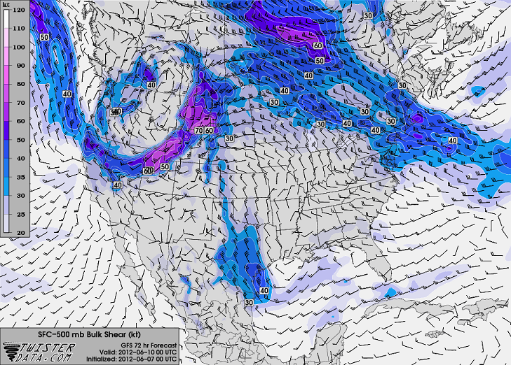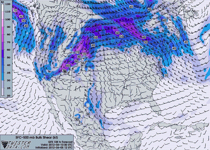 Het ziet er voor komende zaterdag voor het vormen van tornado's nog altijd gunstig uit op de kaarten. Op de nieuwe kaarten nu ook kansen voor Texas daar bleef de shear achter, maar daar nu ook een redelijke shear op de kaart en de cape is daar ook opgelopen tot 4000. Kansen voor North en South Dakaota zien er ook nog altijd gunstig uit.
