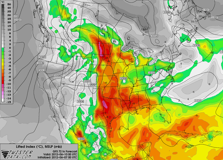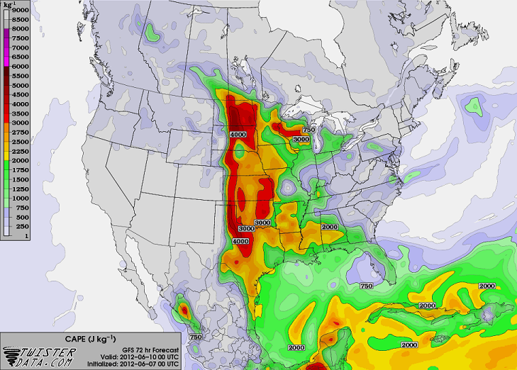 Komend weekend gaat het zwaar weer worden in de VS. De GFS kaarten geven dit al een aantal dagen aan en ook SPC heeft al een aantal dagen serve weather in de verwachting staan voor het weekend en ook voor maandag. Ook de dagen er na lijken nog onstuiming te verlopen. Ik hou het voor nu bij deze 3 dagen, de overige dagen komen later nog aan de orde. Dit topic is om alvast vooruit te blikken op wat er komen gaat die dagen. Voor de dagen zelf volgt per dag een topic inclusief de berichtgeving van de betreffende dag. Aan de kaarten te zien kunnen er zware buien gaan ontstaan en zijn er grote kansen op tornado's aanwezig. Ook zullen de andere randverschijnselen aan de orde komen zoals zware hagelbuien, zware windstoten, hoge bliksemfrequentie en flash floods.