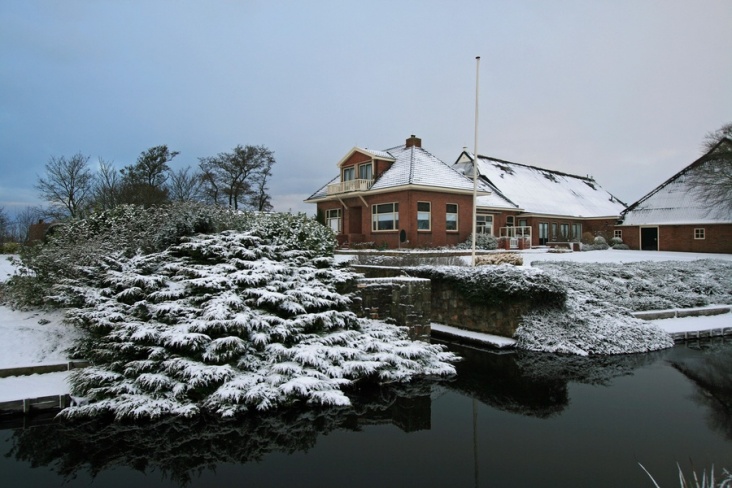Ook in Roodeschool een winters beeld. Aan het water op de voorgrond is te zien dat het de dagen hiervoor niet echt koud was geweest (er ligt geen ijs). Foto: Jannes Wiersema.