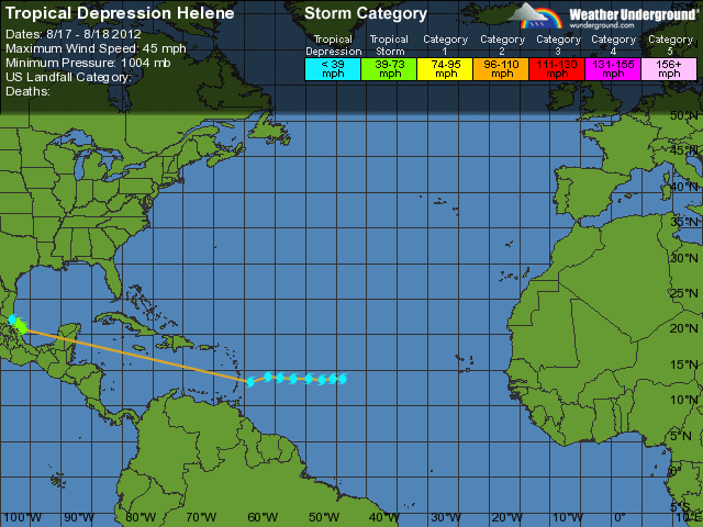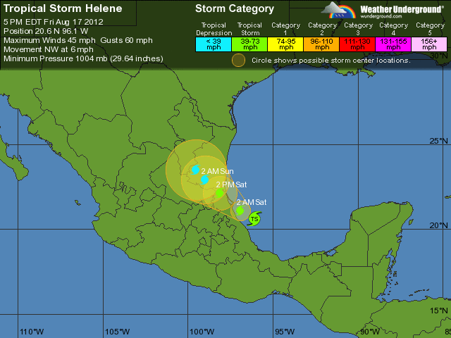 Het NHC heeft het systeem in de Atlantische Oceaan officieel bestempeld als Tropische storm Helene. De windsnelheden bedragen 72 km/h. Voordat het systeem aan land komt, zal deze nog in kracht gaan toenemen. Er is een tropische storm waarschuwing afgegeven voor de kust van Mexico van Barra de Nautla tot La Cruz. Deze regio krijgt de komende 24 uur te maken met de tropische storm.