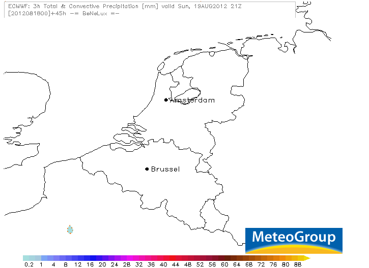 Hierna is er ook nog wel neerslag maar het neerslaggebied lijkt dan te blijven hangen boven midden-Nederland en later weg te trekken naar het oosten.