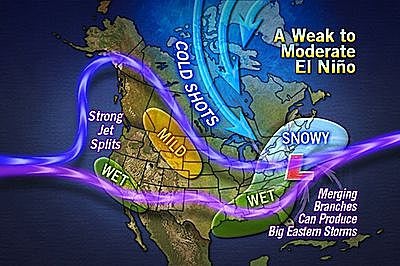 De aanwezigheid van El Niño of La Niña - en hun kracht - wordt gebruikt om de verwachting voor de komende winter en de intensiteit van het seizoen op te stellen. Accuweather's meteorologen verwachten een zwakke tot gemiddelde El Niño tijdens de herfst. Een El Niño patroon wordt gekenmerd door boven gemiddelde watertemperaturen in het midden en het equatoriale deel van de Stille Oceaan. Relatief warmer zeewater verwarmt de lucht boven de oceaan. Welke vervolgens mondiaal de weerpatronen beïnvloedt. El Niño winters worden gekenmerd door een krachtige zuidelijk tak van de jetstream boven de USA. Als de krachtige zuidelijke jetstream samenkomt met de noordelijke tak van de jetstream kan dit leiden tot grote (sneeuw)stormen en blizzards.