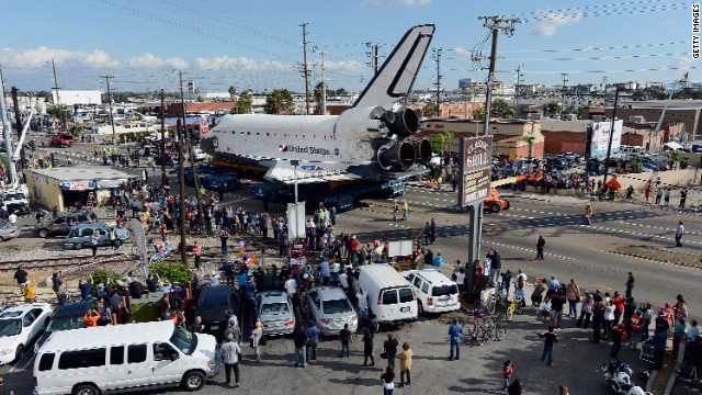 "Calling Houston. Space shuttle Endeavour is navigating La La Land." De gepensioneerde shuttle werd door de straten van LA richting het California Science Centre gesleept. De tocht zal twee dagen duren. Langs de routen zijn verschillende elektriciteitspalen en verkeerslichten verwijderd om de shuttle vrije doorgang te geven.