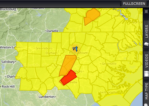 Hoewel er een risico bestond op tornado's zijn er geen officiele meldingen van tornado's binnen gekomen bij het SPC. Er waren wel twee onofficiele funnelclouds bij Warsaw (NC) en in Culpeper County (Va).