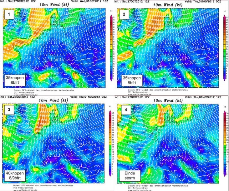 Voor a.s. woensdag op donderdagnacht staat er volgens de 12h run van GFS zelfs een klein (ZW-er )stormpje op het programma. ( zo een 35 knopen 7/8 Bfrt en zelfs 1 kaartje met 40 knopen ! (net geen 9 Bfrt)