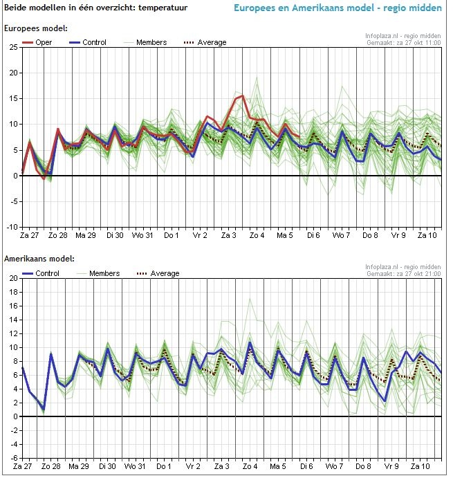In mijn post iets terug daar staat een mooie temperatuur verwachting van de 2 grote weermodellen.