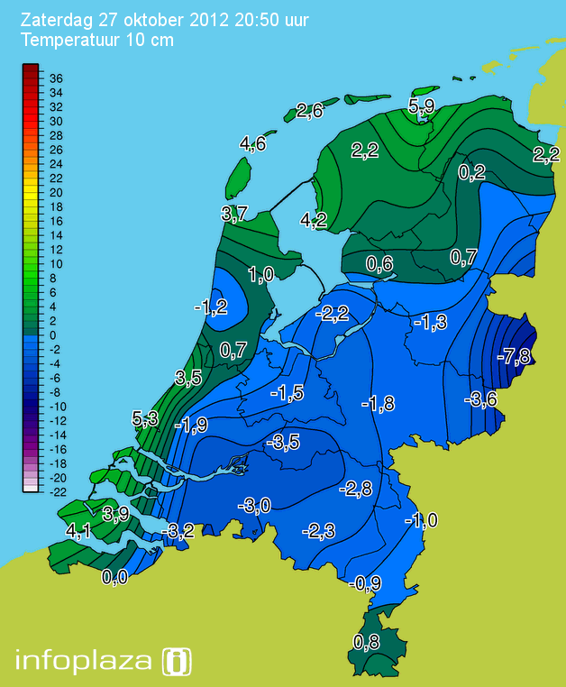 Maar kort samengevat temperaturen op (of zeker begin november) onder normaal met nu even geen nachtvorst meer in Nederland.