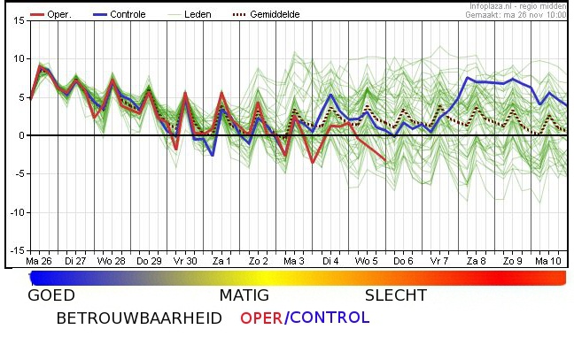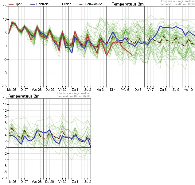 Het gemiddelde-lijntje blijft alle runs behoorlijk gelijk, het is, net als vorig jaar, vooral de oper en control die sprongen maken. Vorig jaar bleek uiteindelijk het gemiddelde lijntje op op MT en LT betrouwbaarder dan de huppelende oper en control, met name in het eerste deel van de winter