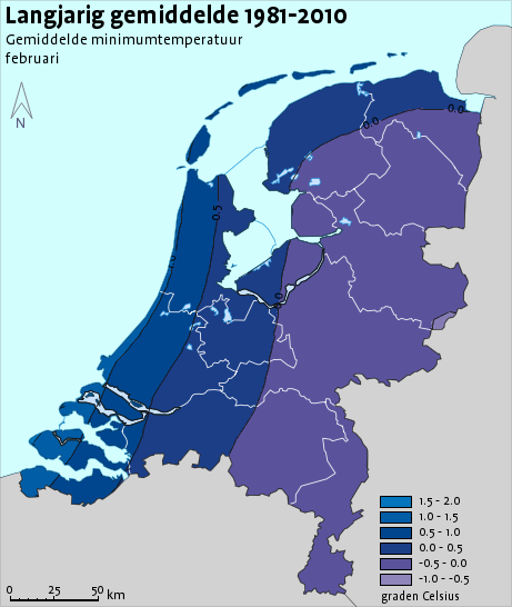 Ik heb eens wat kaartjes opgedoken met de langjarige gemiddelde minima:
