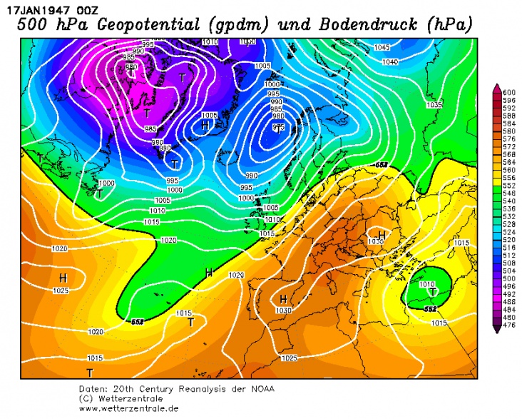 Mooiste voorbeeld van dat het weer je voor gek kan houden vind ik nog steeds 1947. Toen het op 16 januari +17 graden werd in Maastricht en iedereen op een terrasje lekker in het zonnetje zat te dromen dat het nu wel afgelopen was met die winter.... De stroming was Zuid tot Zuidwest en warme lucht uit Spanje bereikte onze streken.