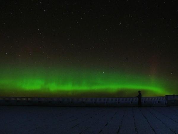 Aurora borealis ( northern lights) captured last night by the crew at the summit of Mt Washington. Foto van Ron