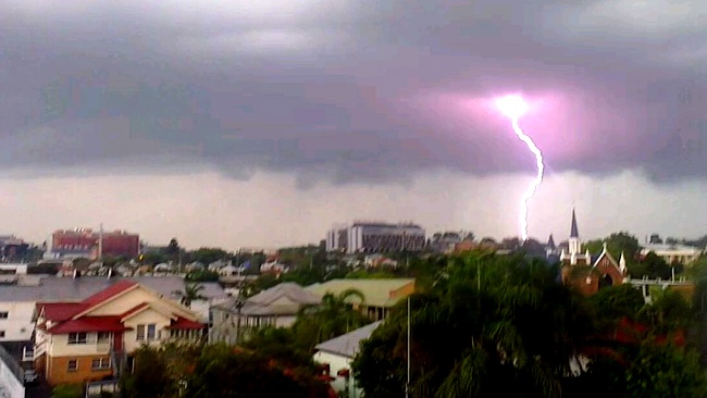 07.51 pm: Het onweer is al te zien en te horen in grote delen van Brisbane en het zuidoosten. In Darling Downs is als 60mm regen gevallen.