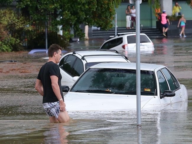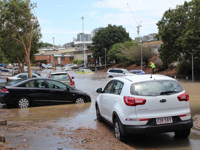 Cars flooded in at St Pauls Tce. Picture: Paul Hruby.