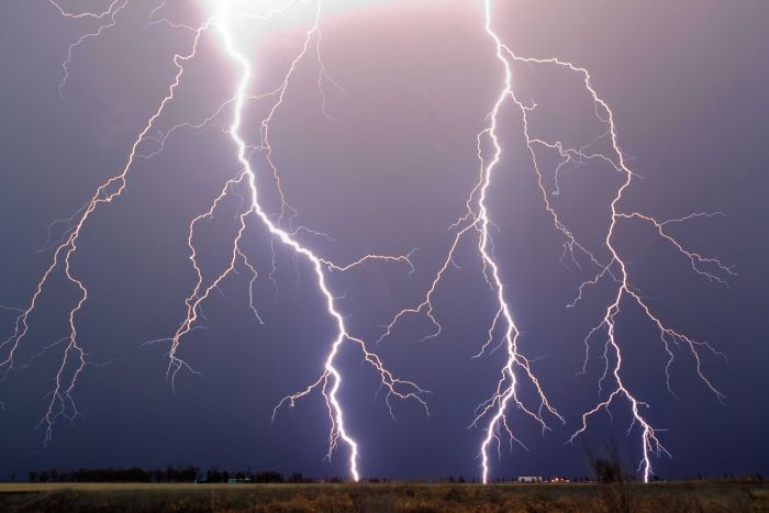 Lightning crashes just outside Dalby in southern Queensland. (Audience submitted: Hans Siebert)