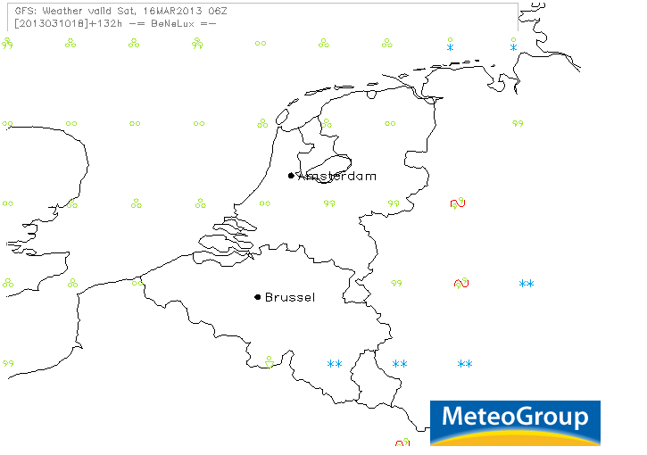 Staat wel aardig wat neerslag op de kaart maar geen sneeuw gezien de minimale temperatuur en de 850hPa temp. Dus sneeuw zal het niet zijn. Leuk om in de gaten te houden, maar het is nog erg ver weg. Morgen is al lastig genoeg om te zeggen wat het gaat worden, want het verschilt per run en per model.