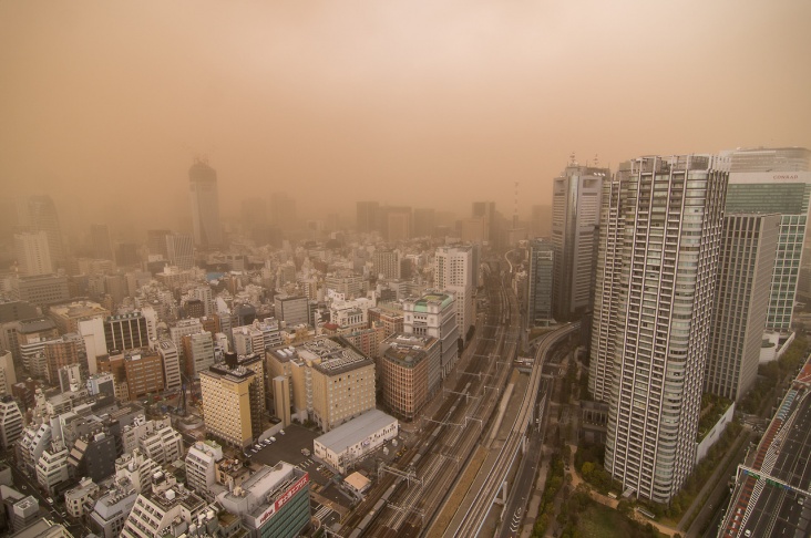 Dan Castellano: This sandstorm looks apocalyptic. Tokyo sky is now yellow