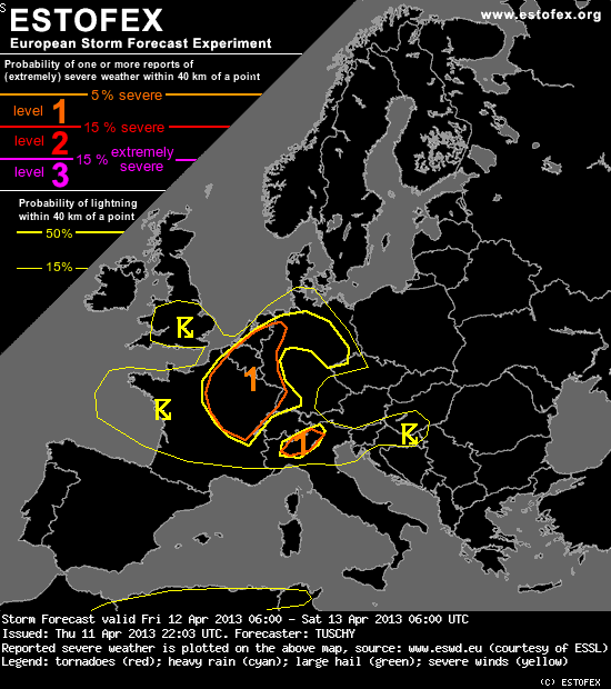 Valid: Fri 12 Apr 2013 06:00 to Sat 13 Apr 2013 06:00 UTC