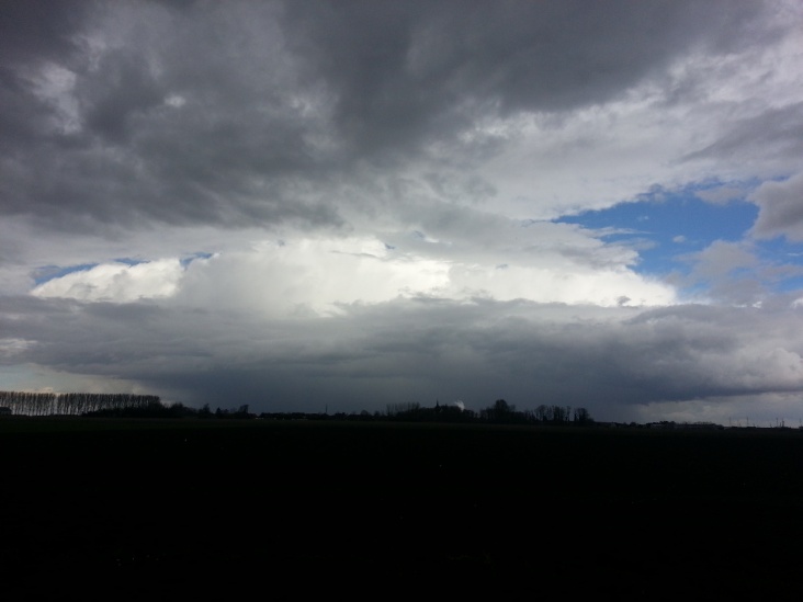 Net zware bui : hevige regen en zware hagelbui..auto's moesten aan de kant gaan staan , konden gewoon niet verder ! 2 zware donderslagen !