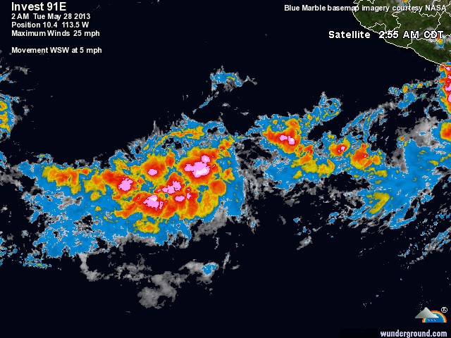 De waarschijnlijkheid van het vormen van een Tropische Orkaan is gegroeid naar 30% binnen 48 uur, door een toenemende aanvulling van onweersbuien rondom het systeem. Invest 91E verplaatst zich momenteel in een westelijke richting met 10 mijl per uur.