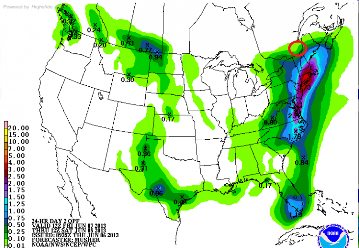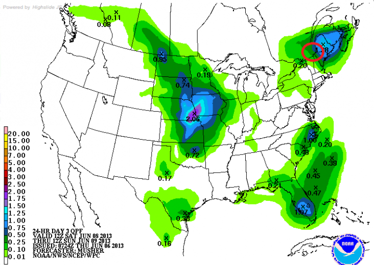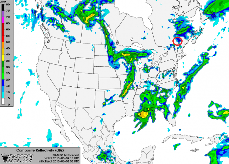 Dit weekend staat alweer de 7e GP van seizoen 2013 op het programma. De weersvooruitzichten laten een nat weekend zien. TC Andrea trekt langs de oostkust van zuid naar noord. De bijbehorende regenbanden trekken vrijdag en zaterdag over de regio Quebec waar Montreal ligt. Zondag is Andrea al ver de zee opgetrokken, maar er ontstaan in de loop van de dag buien, die ook tijdens de race kunnen gaan vallen.