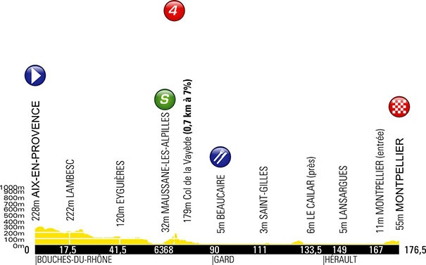 De laatste etappe voor de Pyreneeën is er weer één die de hele dag op en neer gaat. Het lijkt voor Peter Sagan wederom een mooie gelegenheid om goede zaken te doen in de strijd om de groene trui. Al zullen veel rittenkapers de plannen van de Slowaak willen dwarsbomen. Het peloton rijdt vandaag van Montpellier naar Albi over een afstand van 205,5 kilometer. De organisatie heeft weer vier cols in een categorie ingedeeld, waardoor vluchters hun slag kunnen slaan in het bergklassement voordat de echte bergen opdoemen. Het is voor de sprinters de laatste kans voor het hooggebergte. Degene met goede benen zullen dus zeker proberen tot het einde bij te blijven.