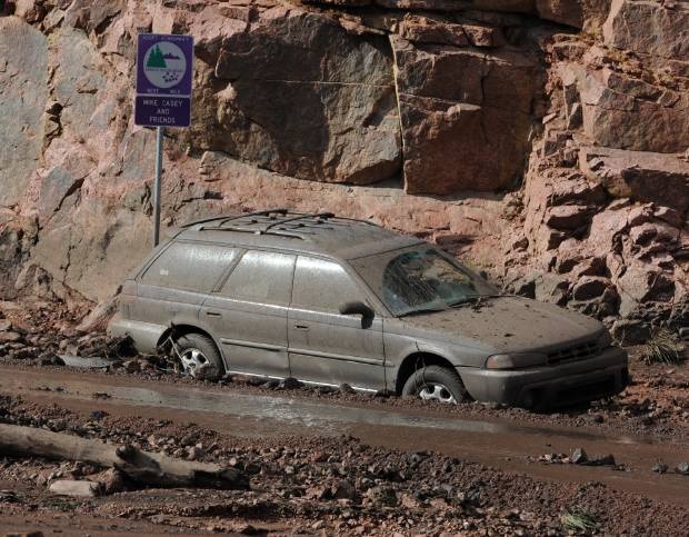 This was covered in mud and was able to drive down Hwy. 24 after a flash flood near the Waldo Canyon Fire area. The mudslide and flash flood occurred west of Manitou Springs on Wednesday, July 10, 2013 . (The Gazette/Jerilee Bennett)